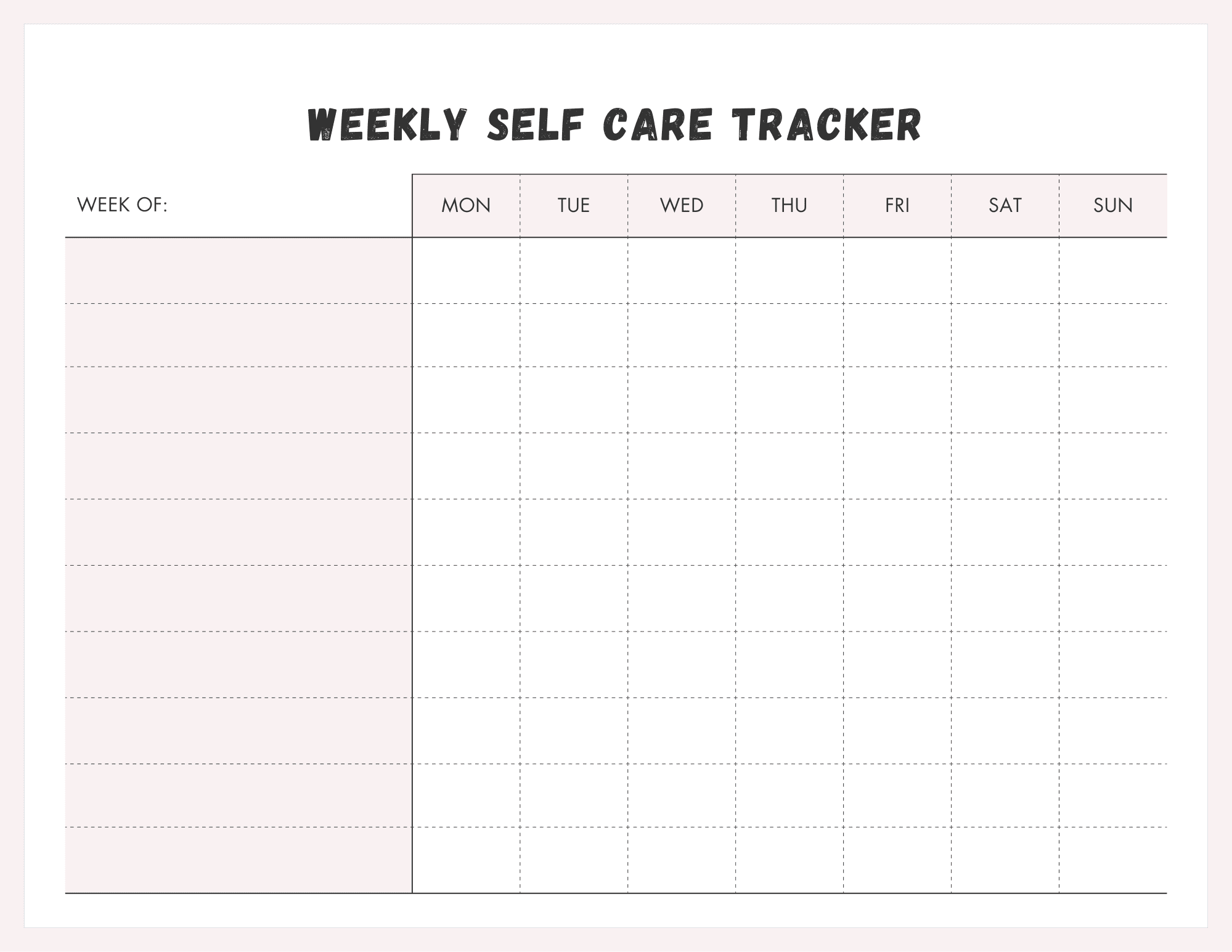 Here is the Weekly Self-Care Tracker.